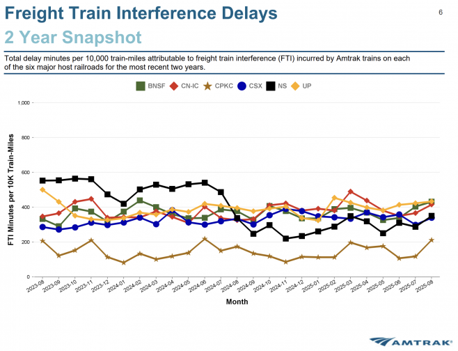 But among the Long Distance routes, the Crescent – fresh off a Justice Dept. settlement on poor timekeeping – broke out of the pack and was the only long-haul train to beat the Federal Railroad Administration’s 80-percent Customer OTP standard in August.